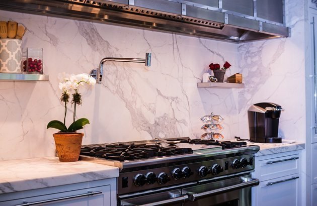 Marble-Effect Kitchen BacksplashStylish marble-effect tiles offering a designer finish for high-end kitchen interiors. Kitchen Backsplash Tiles